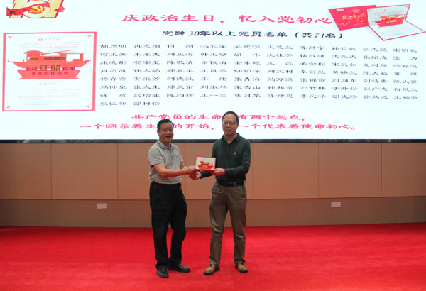 為入黨30年以上的黨員代表頒發(fā)政治生日珍藏卡